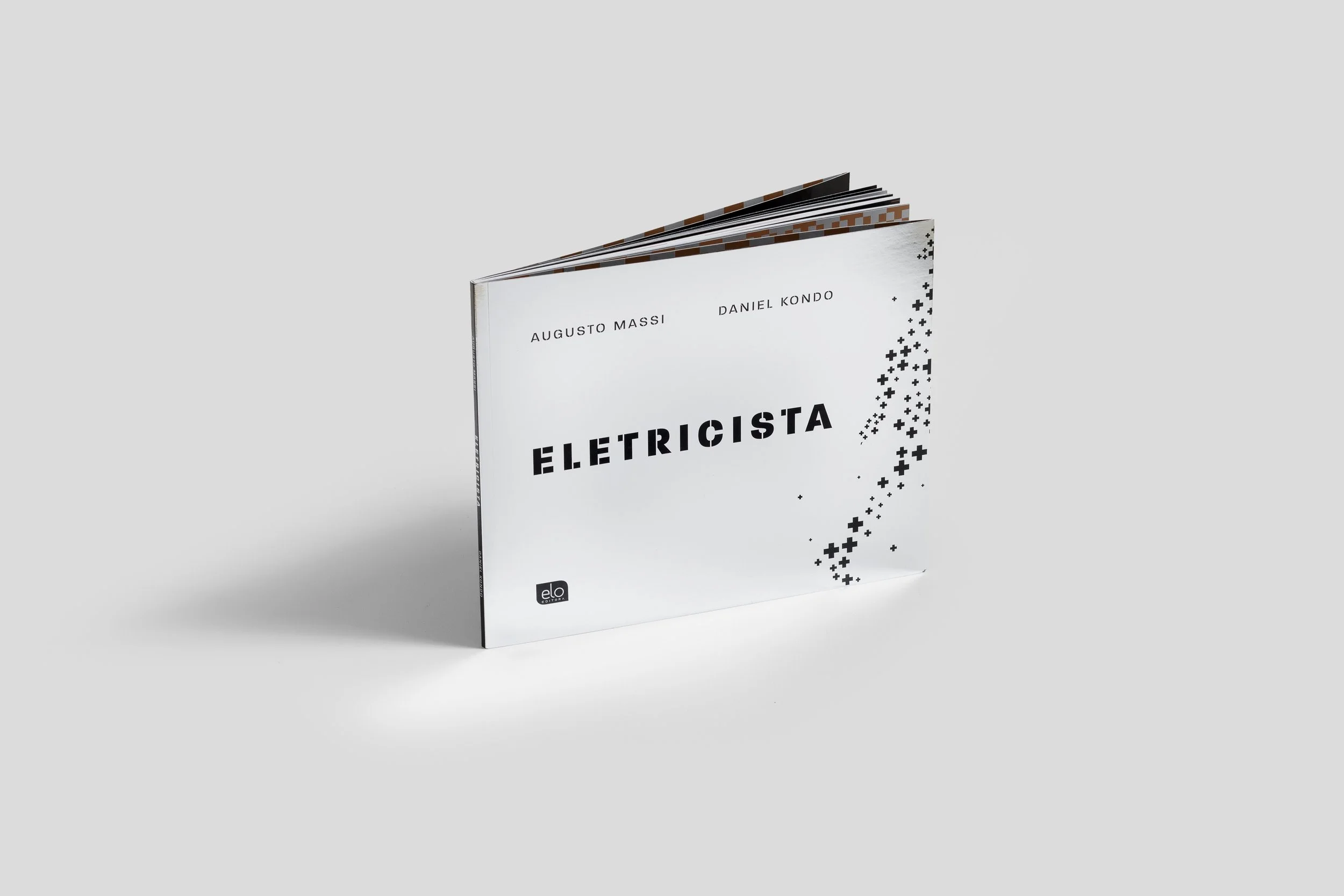Capa de livro com título 'Eletricista', autores Augusto Massi e Daniel Kondo, com design minimalista branco com pontos pretos.